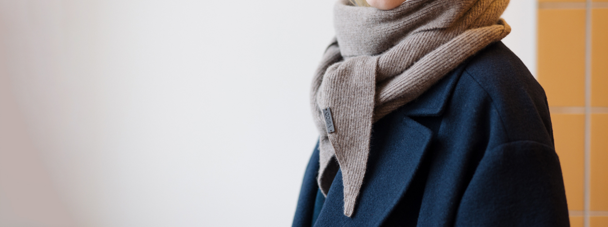 Gebreide sjaal in driehoek vorm, op verschillende manieren te stylen en daardoor perfect voor alle seizoenen.